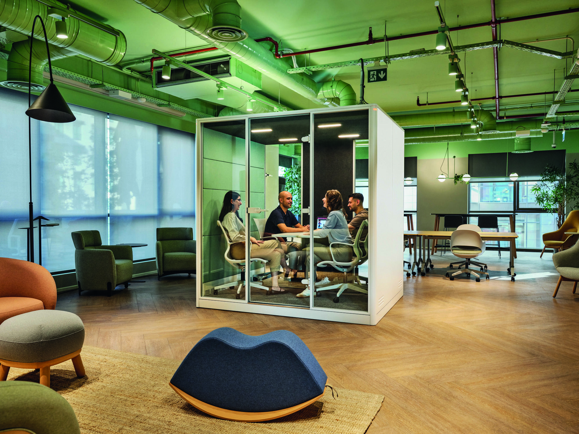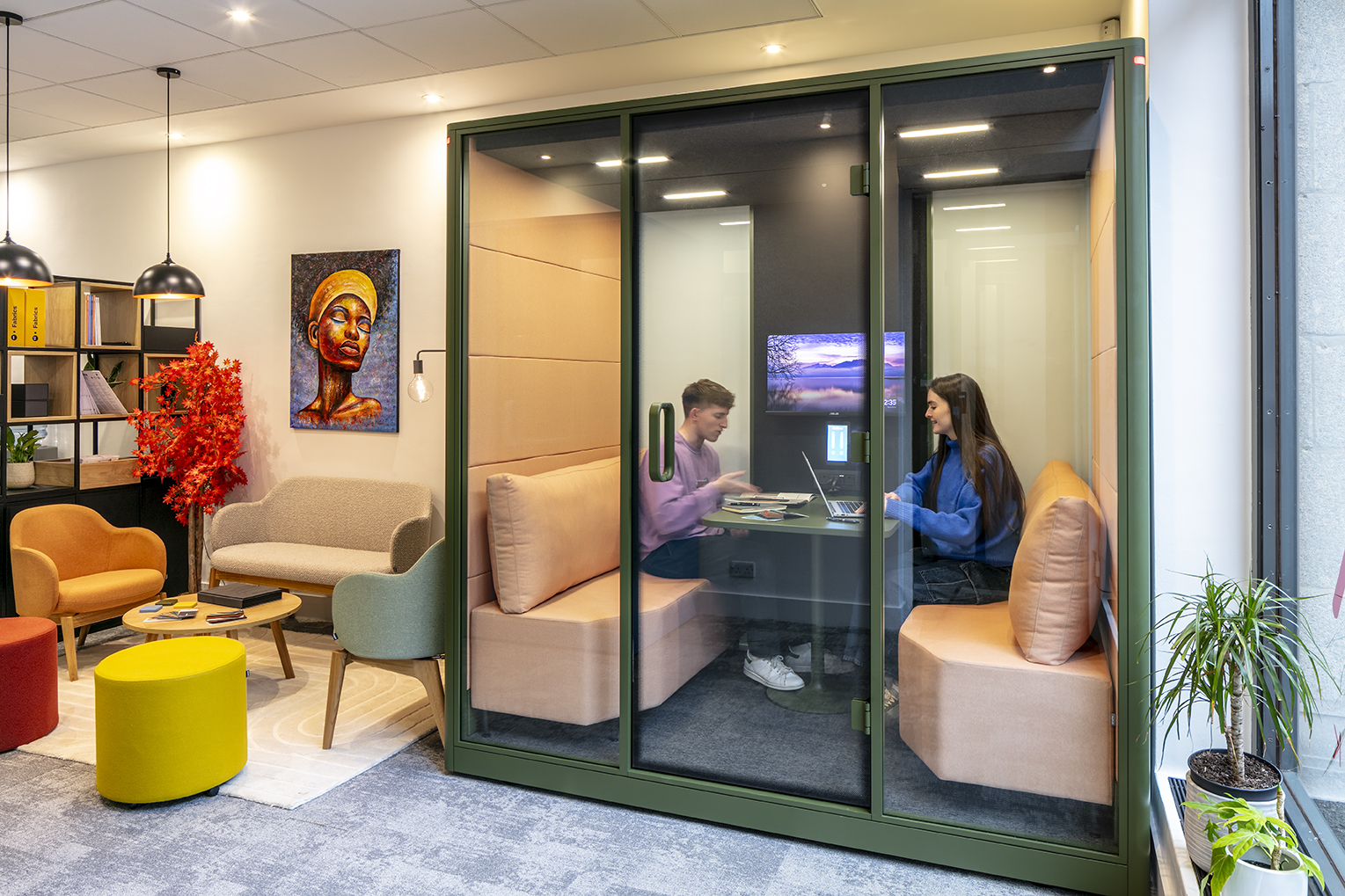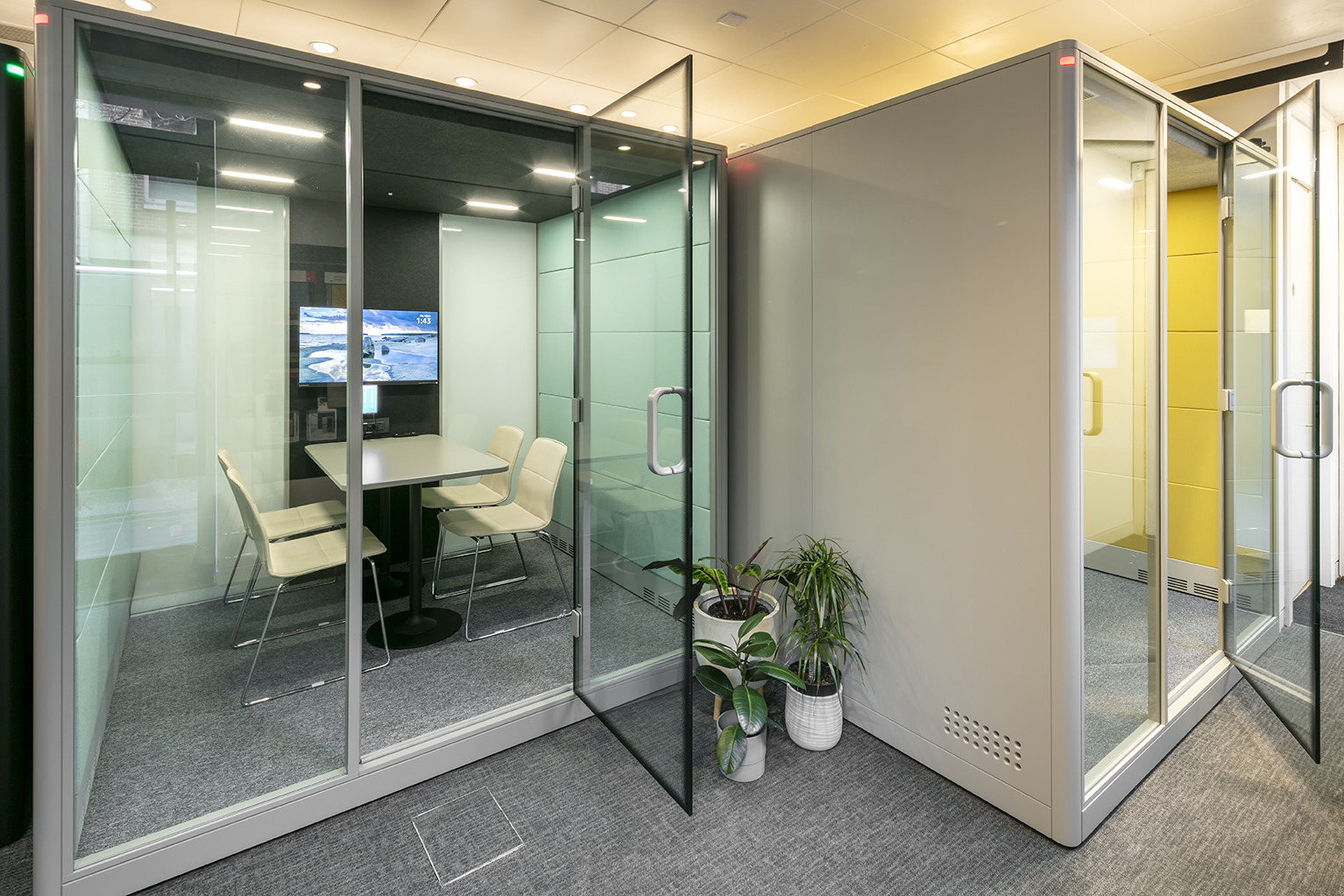 All pods can be customised in terms of size, finishes, fabrics and colours, so they integrate seamlessly into any workspace.