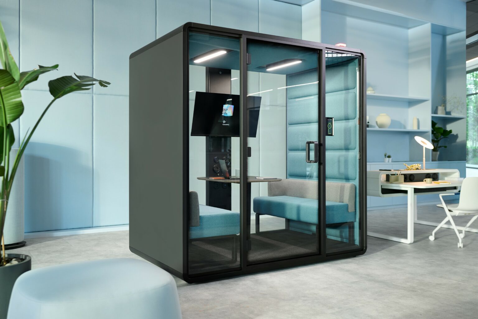 Extremely efficient ventilation in acoustic booths from the hushFree line improves employee comfort and increases productivity. Fast air exchange maximizes safety in acoustic pods and affects the well-being of people working in them.