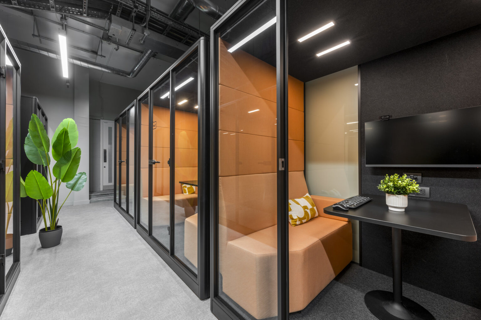 Our pods aided in bringing a sense of calm to a modern open-planned office space, while providing a space for large confidential meetings, 1-on-1 tasks and focus work.